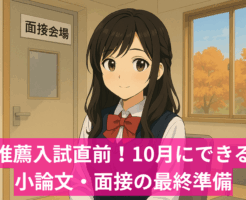 こんにちは!桜凛進学塾浦和校です。 いつもご覧いただきありがとうございます。 10月に入り、いよいよ推薦入試本番の時期が近づいてきました。 「準備はしてきたけど、まだ不安が残る」「面接で何を聞かれるか心配…」という声も多・・・